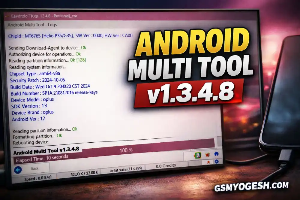 Android Multi Tool (AMT) V1.3.4.8 is now released with important improvements and new device support. This version improves flashing stability, FRP removal process, and bootloader operations.